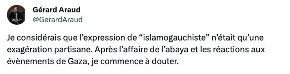 L’ancien ambassadeur de France Gérard Araud a découvert hier à l’occasion de l’attaque du Hamas contre Israël la réalité de l’islamogauchisme, en découvrant les réactions publiées.